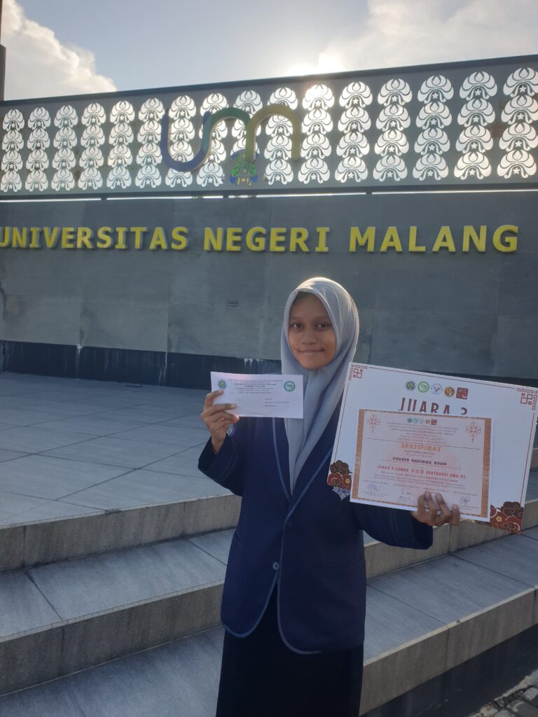 “Hari ini Uyunis Sakinah Syam dalam lomba Story Telling pada kegiatan Guójì Zhōngwén RI 2026 Tingkat SMA se-Nasional yg diselenggarakan oleh Universitas Negeri Malang (UM),” tutur ibu Dzurrotul Arifah, guru bahasa Mandarin MAN 1 Probolinggo.