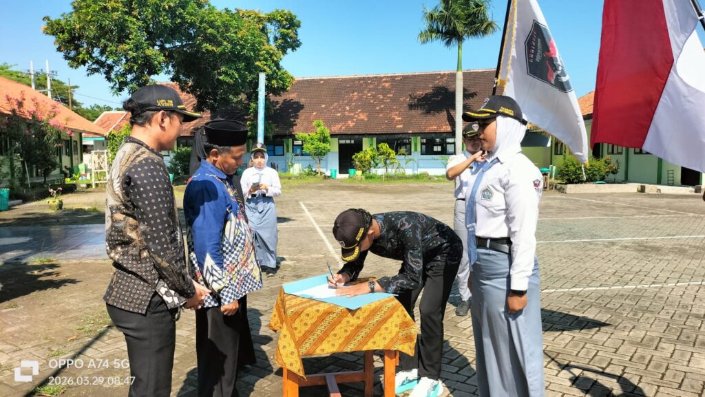 Serahterima Kepengurusan Paskibra Baratayuda MAN 1 Probolinggo periode 2024 -2025 kepada pengurus baru 2025 – 2026 di halam madrasah, Ahad (29/03/2026). Foto: humas mansapro