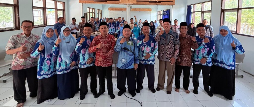 Foto bersama Guru MANSAPRO bersama Pengawas Madrasah (Bapak Abdul Aziz, M.Pd) dan Plt. Kepala Madrasah (Bapak Mudakkir, S.Pd, MM.) hadir dalam acara upgrading skill untuk meningkatkan kualitas Pendidikan.” Foto : TCC Crew